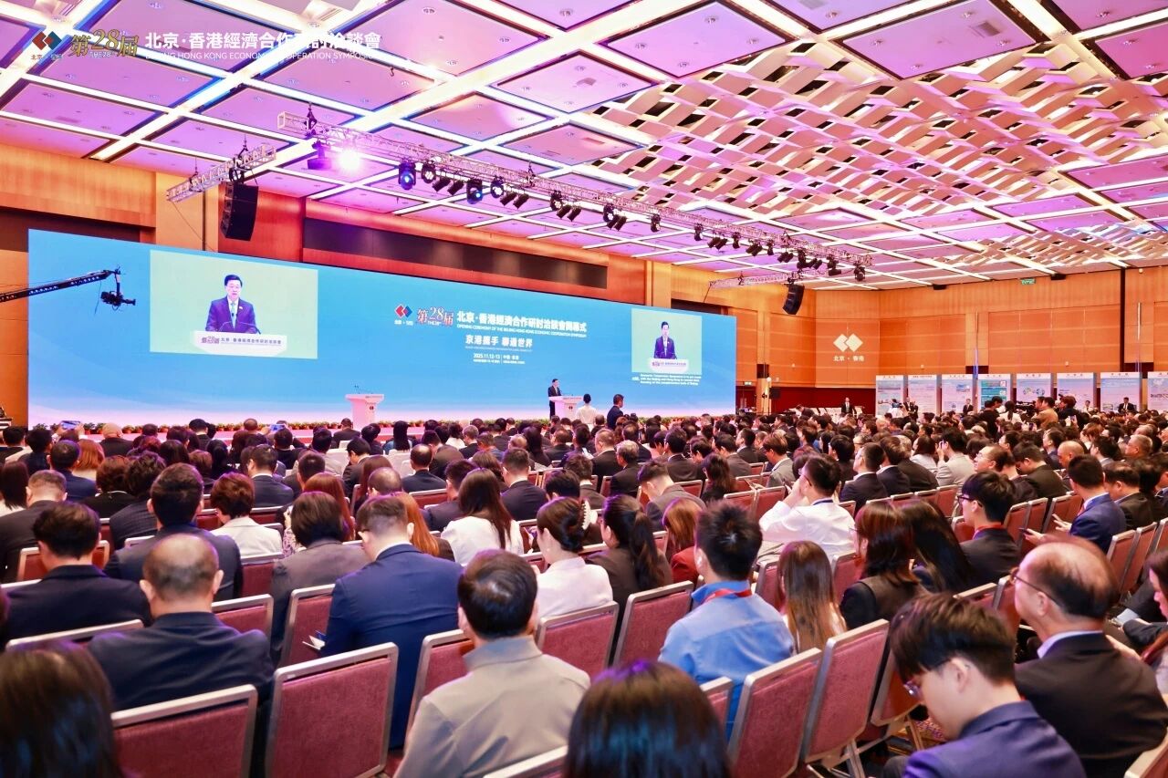 11月12日,第二十八屆北京·香港經濟合作研討洽談會(下稱“京港洽談會”)在香港會議展覽中心開幕。來自京港兩地政府機構、國際商協會、領軍企業和工商界知名人士800余人參會。香港特別行政區行政長官李家超致辭,北京市市長殷勇致辭并宣布第二十八屆京港洽談會開幕。北控集團黨委書記、董事長田振清、北控集團黨委副書記楊治昌應邀出席開幕式。